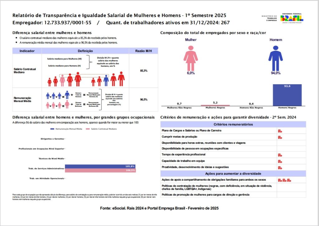 Em cumprimento à Lei nº 14.611/2023 (Lei de Igualdade Salarial), regulamentada pelo Decreto 11.795/2023 e pela Portaria 3.714/2023.